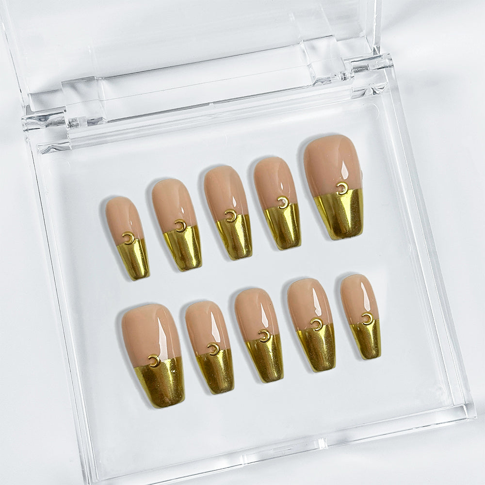 Precision-crafted from top-tier gel and acrylic, providing a radiant, professional-grade gloss that endures for up to 3 weeks. Apply seamlessly in minutes, reusable for repeated styling, and adaptable to your exact fit. Revamp your manicure with these bespoke, fashion-forward designs that blend understated nude charm with bold golden flair – achieve salon perfection from the comfort of home!